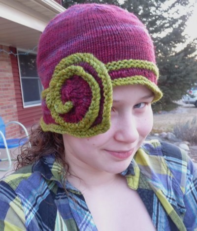 I purposely made the snail part of the hat larger to offset my huge hair. But now that the girl has it, I think I'll restitch it to regular snail size.