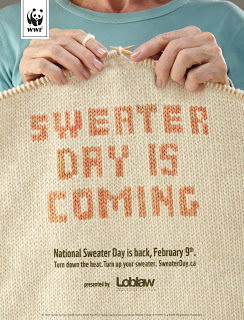Sweater Day is a fun way to make Canadians rethink how we use energy and how much we use… WWF says that if every Canadian lowered the heat a few degrees this winter, it'd be like taking 300,000 vehicles off the road!