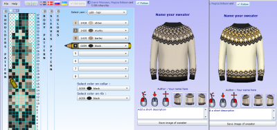 Wow. Just wow. An Icelandic software developer and husband of a knitter tells us that he has developed a software application to help knitters design their own Lopi sweaters. It allows you to choose and place patterns and colors, to experiment and create your own unique designs. It does require Microsoft Silverlight to be installed [a cumbersome experience if you need the latest version...you have to uninstall it manually before installing. But worth it, we think.].