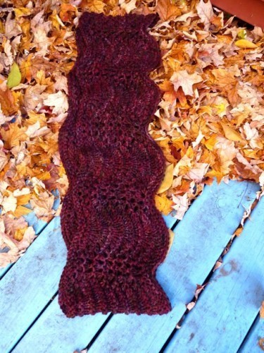 I knit a long (80″) infinity scarf for a friend for her birthday. I used Briar Rose Charity, doubled.