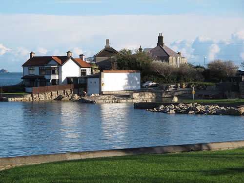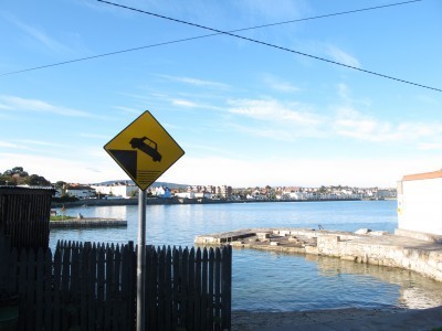 there is a tiny dot in front of the garage in the middle of the photo...that dot is an older man (70?) diving in to the VERY chilly ocean for his daily swim. he was not the only one we saw.