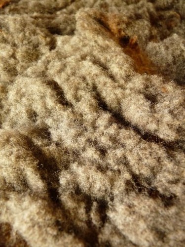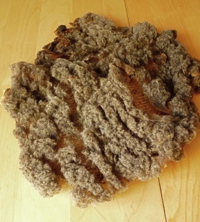 During Deb Menz's class at The Spinning Loft I noticed a fleece. A Babydoll Southdown, short, fine and sproingy bouncy. Unwashed it was the color of spilled pepper. When I washed a lock or two it turned to a gorgeous taupey brown.