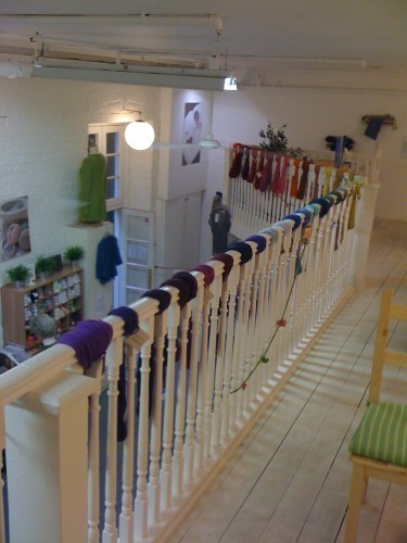 Clever, beautiful yarn display on the upper level balcony