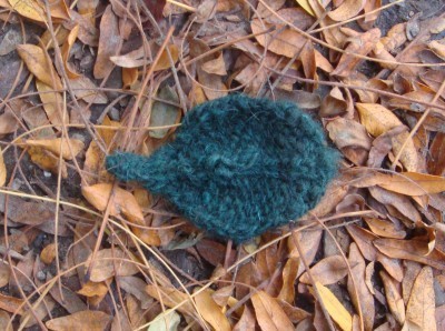 Naturally, I wanted to knit something with it. Something I could keep and show off… spinner extraordinaire Denny suggested a leaf. It's a perfect leafy color, and I knitted it at a leafy time of year… and so…