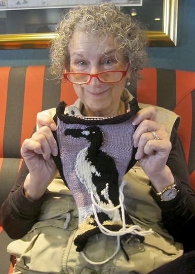 The rumors have been flying for a while, and now we can confirm it: acclaimed Canadian author Margaret Atwood is a knitter. And she's done us proud by contributing a knitted portrait of an Auk, an extinct bird, to an exhibition in London.