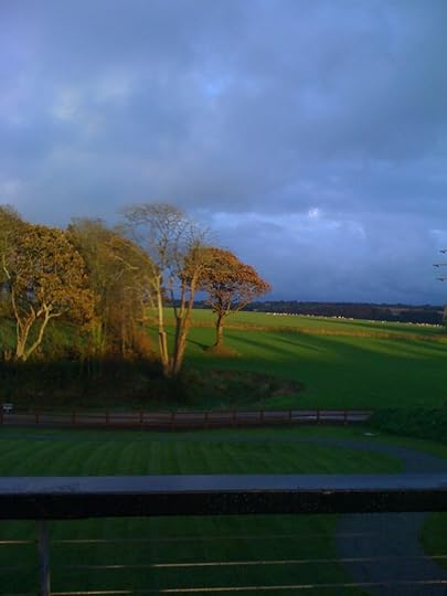 Anyway, after this fun bit of whimsy, Antje took me, Carol Feller [!] and her fabulous staff out to The Ubiquitous Chip for an extraordinary dinner. One of my favorite memories of this trip is of four of us cuddled into fur-covered chairs near the outdoor heater, under the roof overhang so we stayed dry, looking at this view, each with a pint of something yummy at hand.