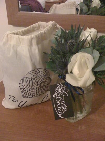thistles and roses, project bag and scotch, chocolate sweeties and a fab mug
