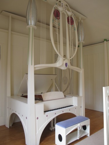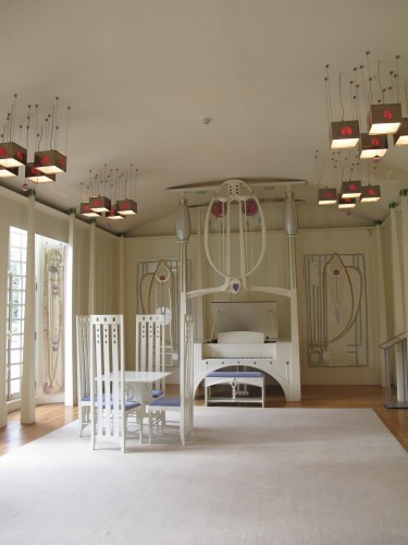 The house was fantastic, in the old sense of the world, and a little more twee than I expected. A fascinating afternoon's visit! Was quite bothered by a motif in the light fixtures that the people who built the house insisted on changing from Rennie Mackintosh's original design. Dudes, you're not him; don't redesign him. But look at this room!