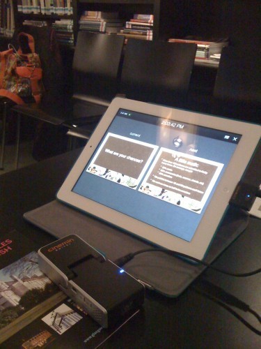 That little black thing in front of my iPad? That's my new pico projector. SO COOL.