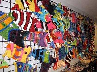 We heard this week from Kimberly Ligocki, the manager of K2Tog, a local yarn store in Albany, CA. This summer, the K2tog team embarked on a community knitting project that involves the Fish Hat as published on Knitty.