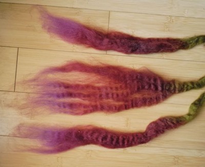 I chose 2 variegated BFL/silk Abstract Fibers tops. One that I liked and one, not so much.