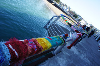 Visitors to Auckland, New Zealand, attending the Rugby World Cup – or indeed those with no interest in rubgy at all! – have been enjoying a number of arts and culture events as part of Art Week Auckland, the Real NZ Festival, and a number of other great events. A key event was the Woolly Walkalong, Knitty Graffity's large scale yarnbomb around the Devonport Wharf. Ninety knitters from nine countries contributed – pieces included a giant squid and Cornish pasties from England's Graffiti Grannies.