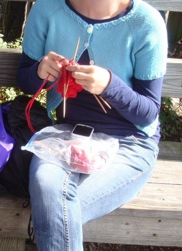 Richmond High is an inner-city school in a city with one of the highest crime rates in the Bay Area. The K2Tog team have embarked on this project to convey their caring support towards the students of this troubled school. And Knitty is so glad that a project we published can help do something important.