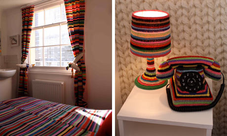 Some knitting, some crochet – but still entirely yarny: a hotel in Brighton, UK, has unveiled its latest theme room: "Do Knit Disturb". The work of designer Kate Jenkins, it's guaranteed to keep you warm – and amused – during your stay. Great photos at the link and more details here.
