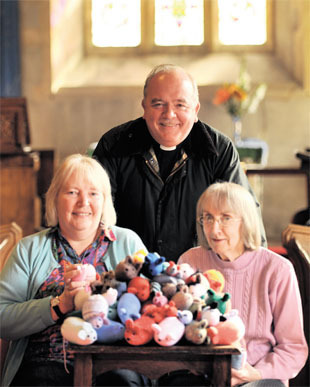 A retired Reverend and her sister are knitting little "church mouse" toys to sell to raise funds for much-needed improvements to their local church facilities in King's Fee village in Wales. So far they have knitted and sold over 600 of the creatures. They are also hosting a photo contest, seeking photographs of their mice in exotic or unusual locations all around the world.