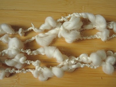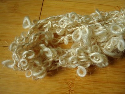 Unwrapped the fiber looks like this : 7.75 ounces of fiber to spin.