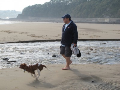 Philly (he's the one I'm married to) and Truman walk on a Welsh beach