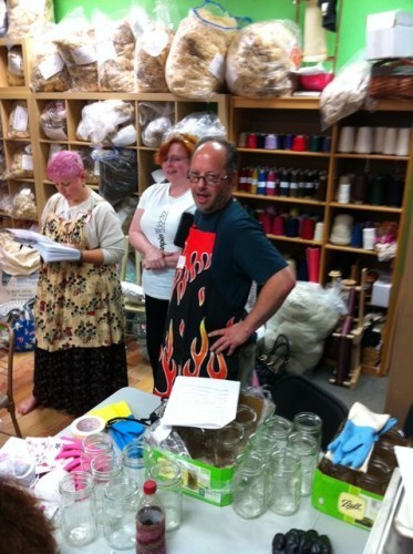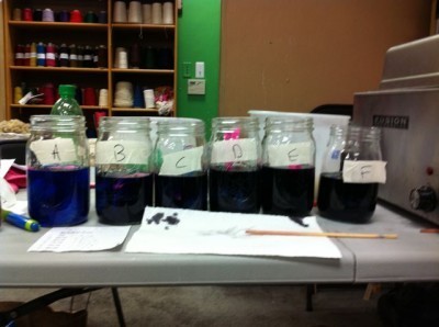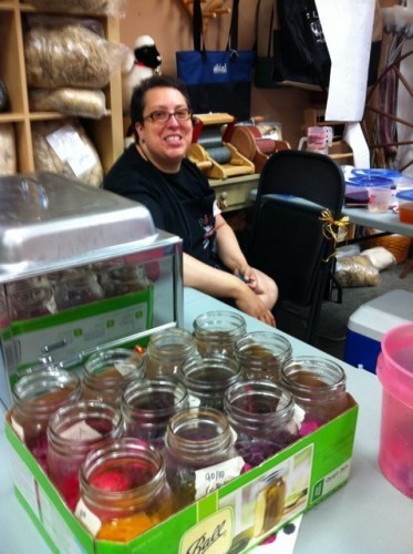 We dyed lots of mini skeins in quart jars