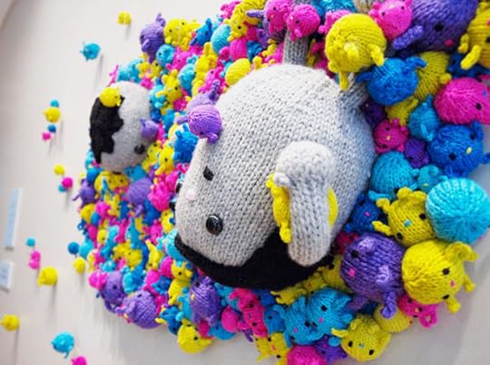 Artist Anna Hrachovec has recently completed a fabulous installation of her little creatures, Mochimochimochimochimochi, at the Lion Brand Studio in NYC.