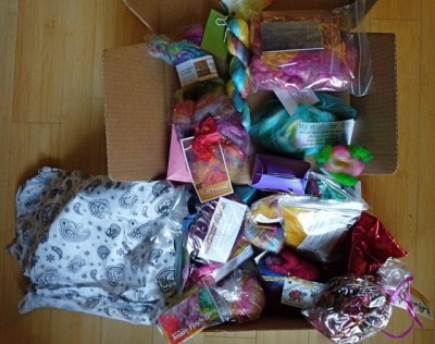 20 little fiber packages, not counting the extra goodies like buttons, henna and a cool bangle to wrap in handspun.
