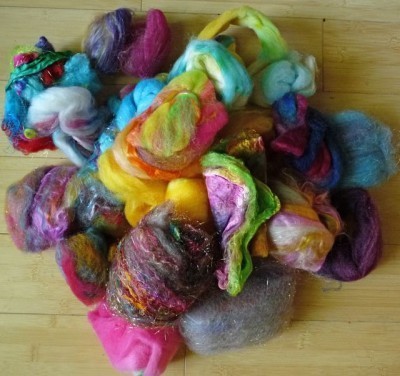 The variety of fiber combinations and color is huge. So what doesn a spinner do with .5 ounce amounts of 20 different fiber blends?