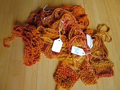 I spun them and plied the singles together in different combinations and knit swatches. I kept track, made tags, took notes.