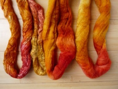 Left to right: Merino/tencel, silk, Merino and BFL.