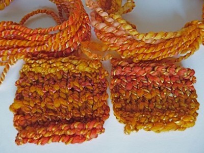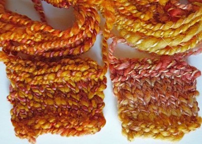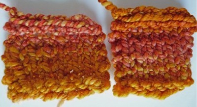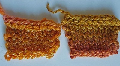 I wanted to know how the difference in the texture of a fiber or fiber blend plied with a different fiber or fiber blend changes the look of the knitting – marling with texture.