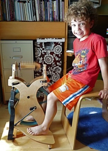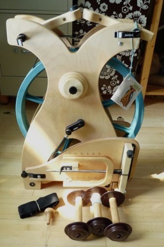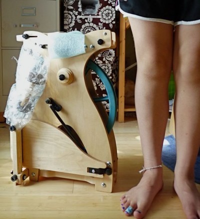 It took 10 minutes to set up using the directions, and it will take half that time once I have the steps memorized. She spins like a dream and is remarkably stable for a little wheel. I'll do a real review in the Deep Fall issue of Knittyspin after I've been spinning on her for a bit.