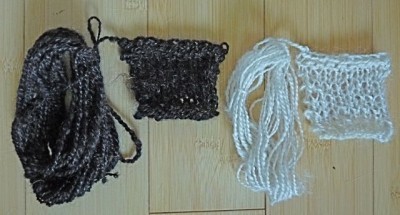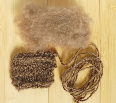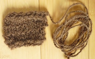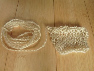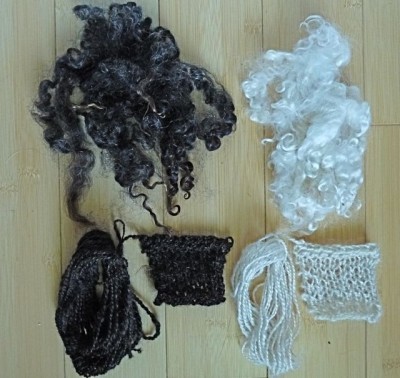 This is the shiniest fiber that I've spun, from lock to knitted swatch the luster holds. It would be beautiful dyed, the luster would make even a single color seem tonal. The yarn and knitted swatch are wonderfully drapey. While I wouldn't wear this next to my skin, I would love it as a shawl.