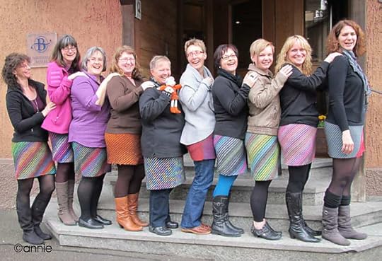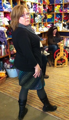 Something interesting seems to happen with this skirt: it's contagious. I wore mine to teach a class at The Purple Purl last Friday, and by the end of the day two more knitters had started the project, including Jennifer, one of the shop owners.