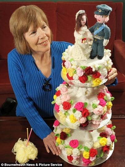 Knitterly royal wedding fever continues unabated… a knitter in the UK has knitted a cake with Prince Wills and Kate cake toppers.