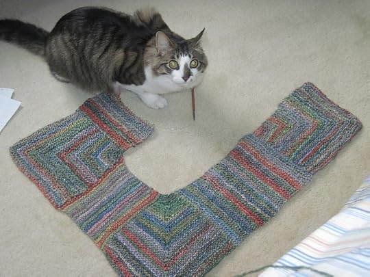 Lynne tells me that aside from Jillian and I, she knows of four or five other knitters who have started the project after seeing hers, including ScarpeGrosse's rather marvelously named "If the stripes are diagonal, they'll make my hips look smaller, right?" (It's a definite yes, honey!)