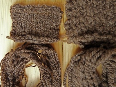 Cotswold: raw and washed fiber, yarn and knitted swatch