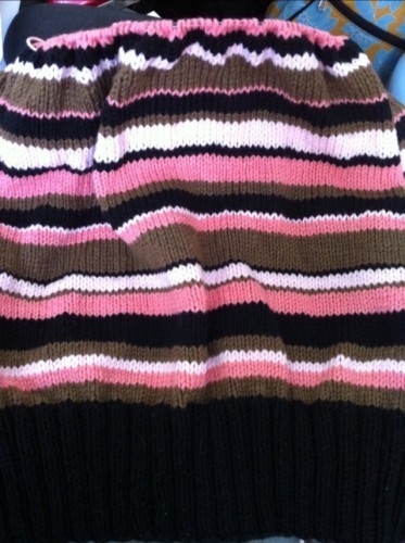 As plies I used (from left) oatmeal, light/dark brown stripe, middle brown and dark brown. I really love how it looks with the dark brown and light/dark stripe in the skein.