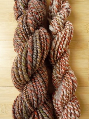 This makes me want to try more combinations, especially ones that I'm not quite sure of. I'll be working with the other brighter colors next, seeing what happens when they are plied with natural colors.