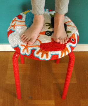 And in the it's-not-knitting-but-still-supremely-cool category comes this hack of an inexpensive Ikea table into a fabulous work of yarny-art.