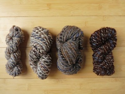 I spun the other three fibers with four different naturals, instead of just the two I used for Briar Rose. Let's see what they look like