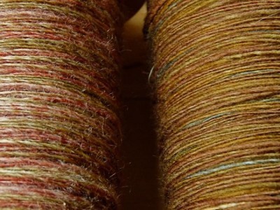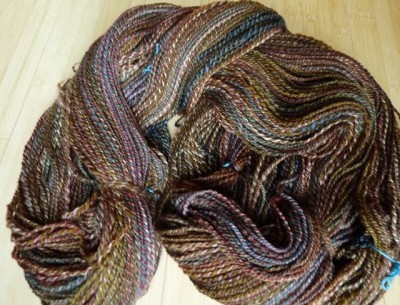 I couldn't wait to see what these two would look like as a piled yarn. I spun and plied most of this over 3 days – I actually woke up with sore calves in the morning! I love these colors together, and yes, they even marl in some places. I'm not usually a fan of marled yarn.
