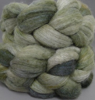 Miss Babs Hand Dyed Yarns and Fibers has donated 8 ounces of 80% mixed BFL/20% tussah blend top in her Bog colorway for a giveaway.