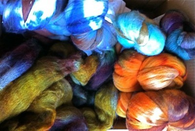 Leaving me wide open to choose. I roamed my stash; friends offered suggestions that I loved: your oldest stashed fiber, a color or fiber you hate or love, a forbidden too special to spin fiber, a fiber with a great memory or story associated with it, something you dyed yourself. You can see why I love my spinning friends.
