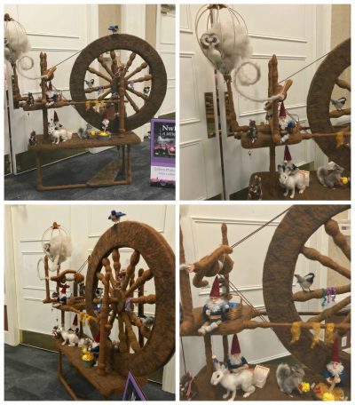 A giant felted spinning wheel!What I didn’t really realize when I said yes to teaching at the NwRSA conference this year is just how many spinners there are in the upper left hand corner of the US. The North West Regional Spinners Association conference is a whole bunch of guilds coming together. It was all spinning all the time and it was wonderful!