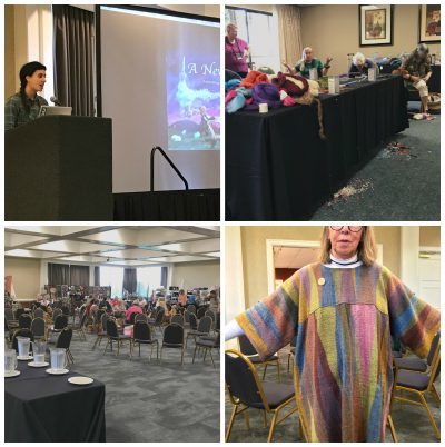 I taught Yarnitecture and the Gist of Grist to very enthusiastic and talented spinners. The conference was in a hotel in Olympia and we pretty much took over.