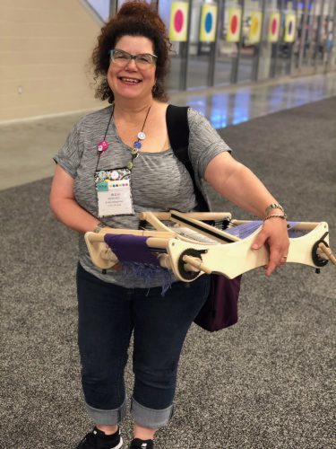 You’ll notice that I haven’t mention weaving, the craft that I keep dancing around. Well, at this show I stepped fully into the weaving soul train. There was great weaving at the show. Purl and Loop had their new woven earrings, Ashford was there, Kromski premiered a new rigid heddle loom. Schacht has a great new Easel Weaver, it’s an I style loom with a kickstand, genius. I can’t wait to play with it.