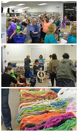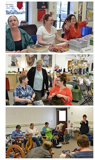 The party started on Friday night with a book signing. Then we had a spin/knit in on Friday night. I met so many wonderful new-to-me spinners. Everyone was so excited to spin together.
