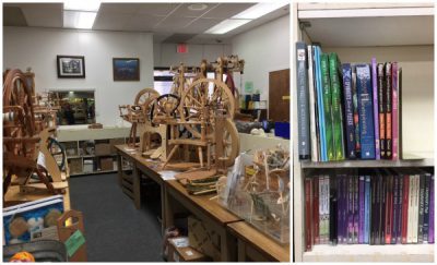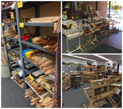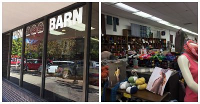 The current location of the Yarn Barn used to be a bookstore and newsstand, it has a ton of floor space. They carry a huge array of tools, fiber and yarn for knitting, weaving and spinning, and have classes.