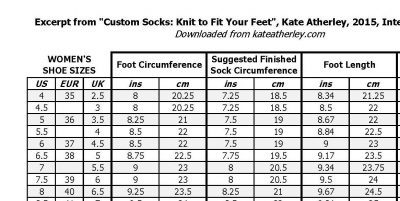 Knitters and designers are always asking about foot size, and so I’ve decided to publish a key excerpt from the book: the foot size tables.