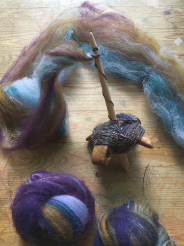 You can tell from the photo that I’m still a newbie on Turkish spindles. I buy them and then don’t use them much. I find them a little intimidating. I dream of having beautifully wound cops like Evanita Montalvo. I have a lot practicing to do.