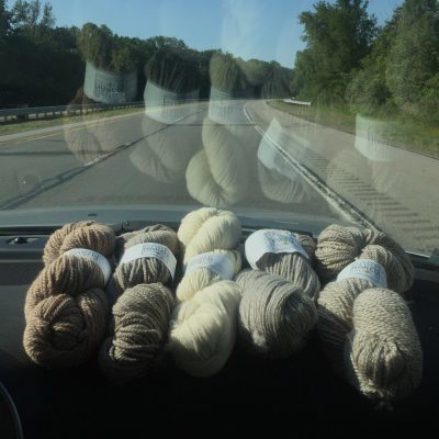 On the drive to college I hand wound all of my yarns. One the way home I knit swatches. Spinning, knitting and fiber don’t always work for me when I’m agitated and emotional, but this time it was perfect. It was both mindful and mindless.