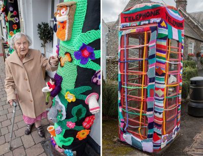 This delightful story about 104-year old Grace Brett landed in my inbox last week, describing her role in helping a group of “yarnstormers” decorate the burgh of Selkirk in Scotland and claiming she “just might be the oldest street artist in the world”.